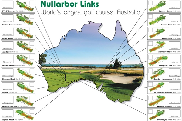Interesting Fact: Australia is home to the world's longest golf course. The Nullarbor Links spans a whopping 848 miles from Kalgoorlie in Western Australia to Ceduna in South Australia. The course consists of 18 holes, with each one located in a different town along the 1000+mile long Eyre Highway.
